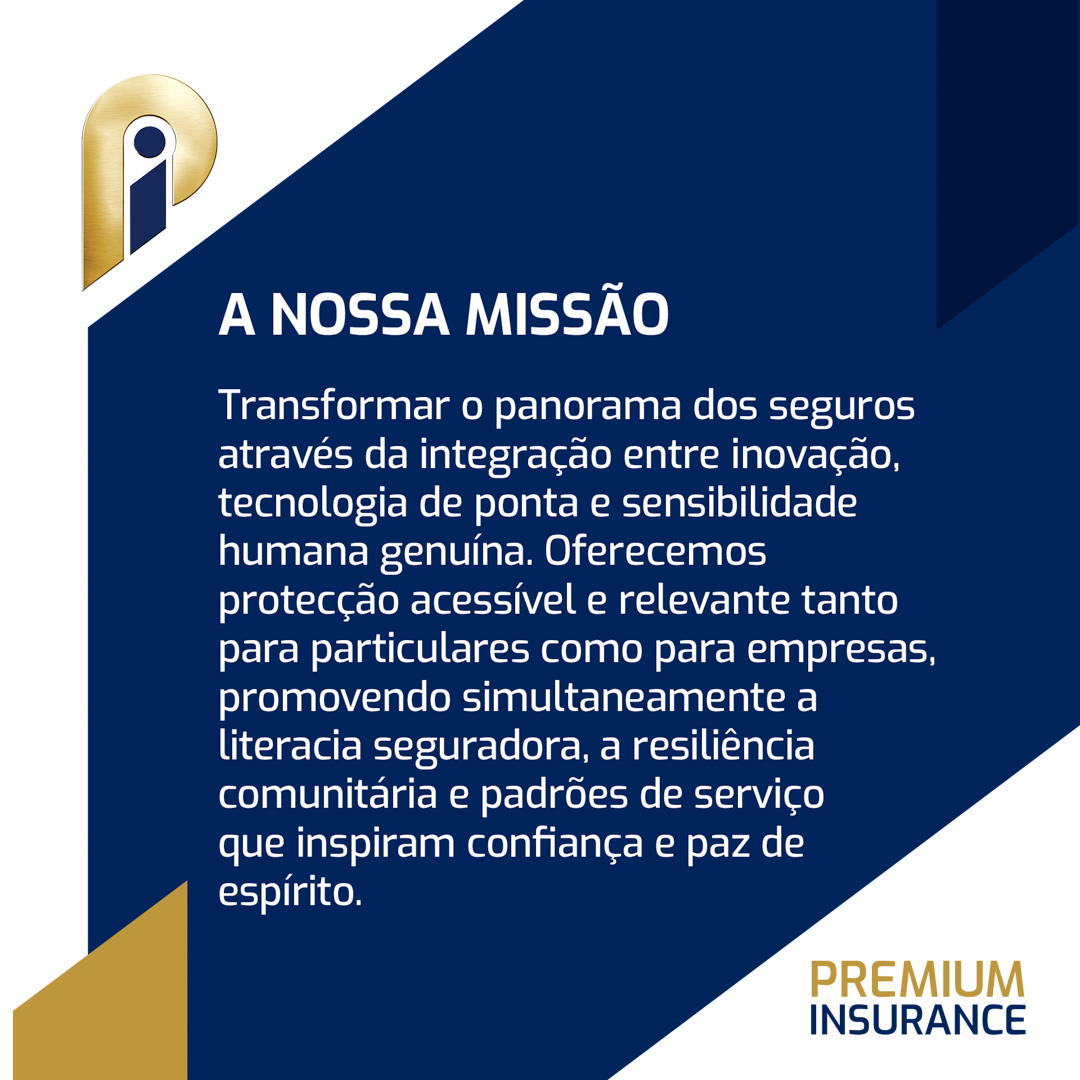A Premium Insurance é uma seguradora dinâmica e fiável, dedicada a fornecer soluções rápidas e personalizadas para indivíduos, empresas e parceiros. Com a inovação no nosso núcleo, criamos planos de seguro que satisfazem as exigências de hoje e antecipam as necessidades de amanhã - mantendo-o protegido a cada passo do caminho.
